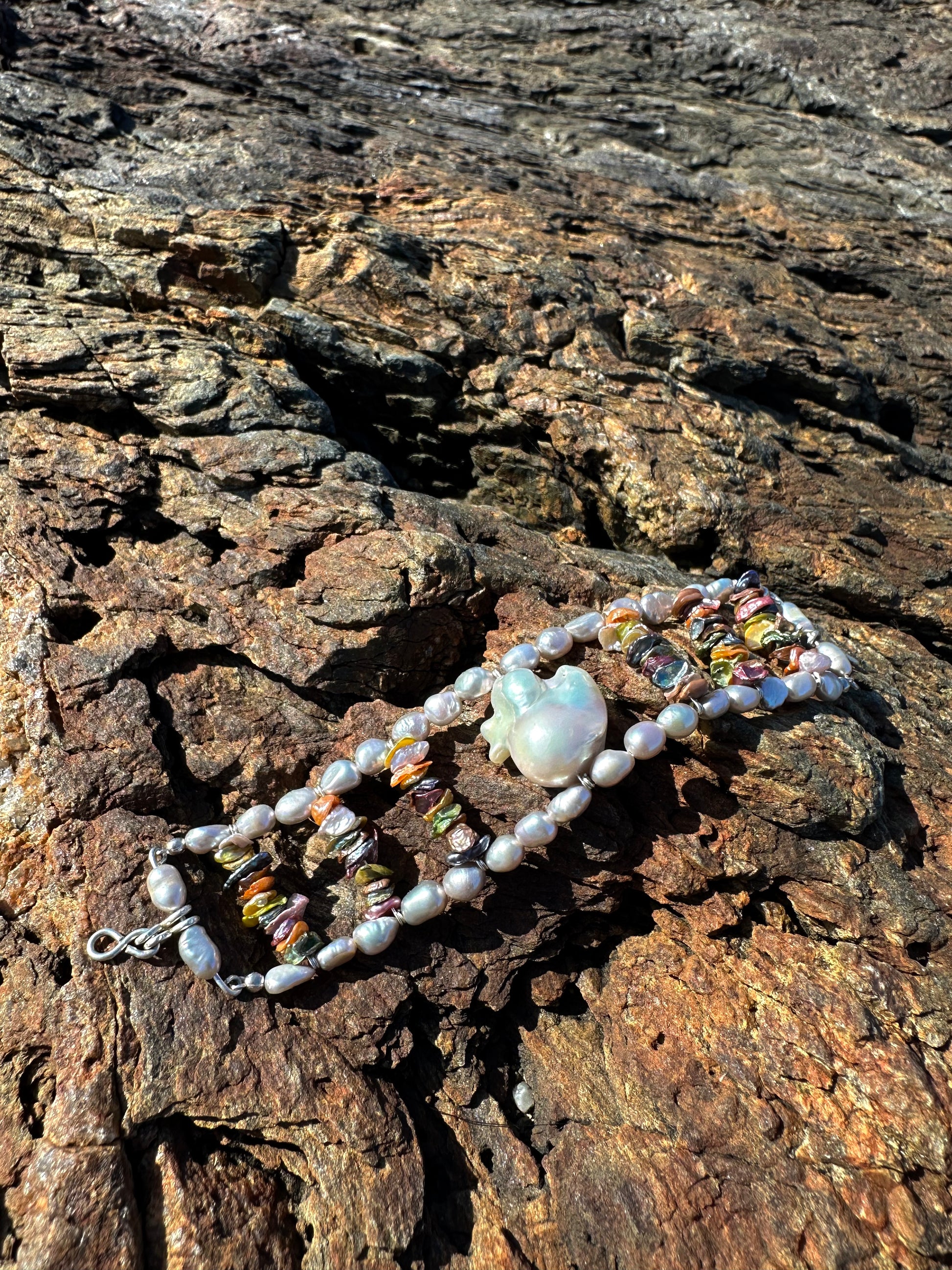 perla barroca · perlas de agua dulce teñidas · perlas keshi teñidas · plata 925 · interior: hilo de nylon · cierre: plata 925
