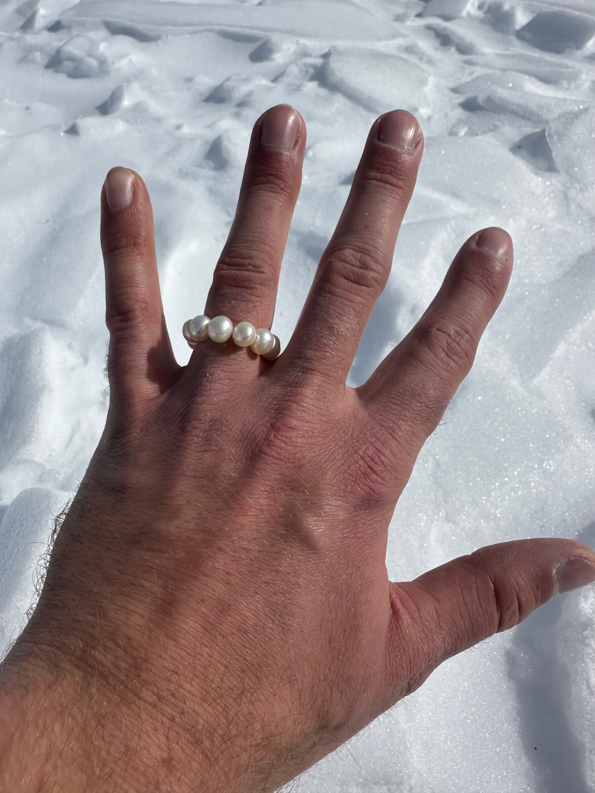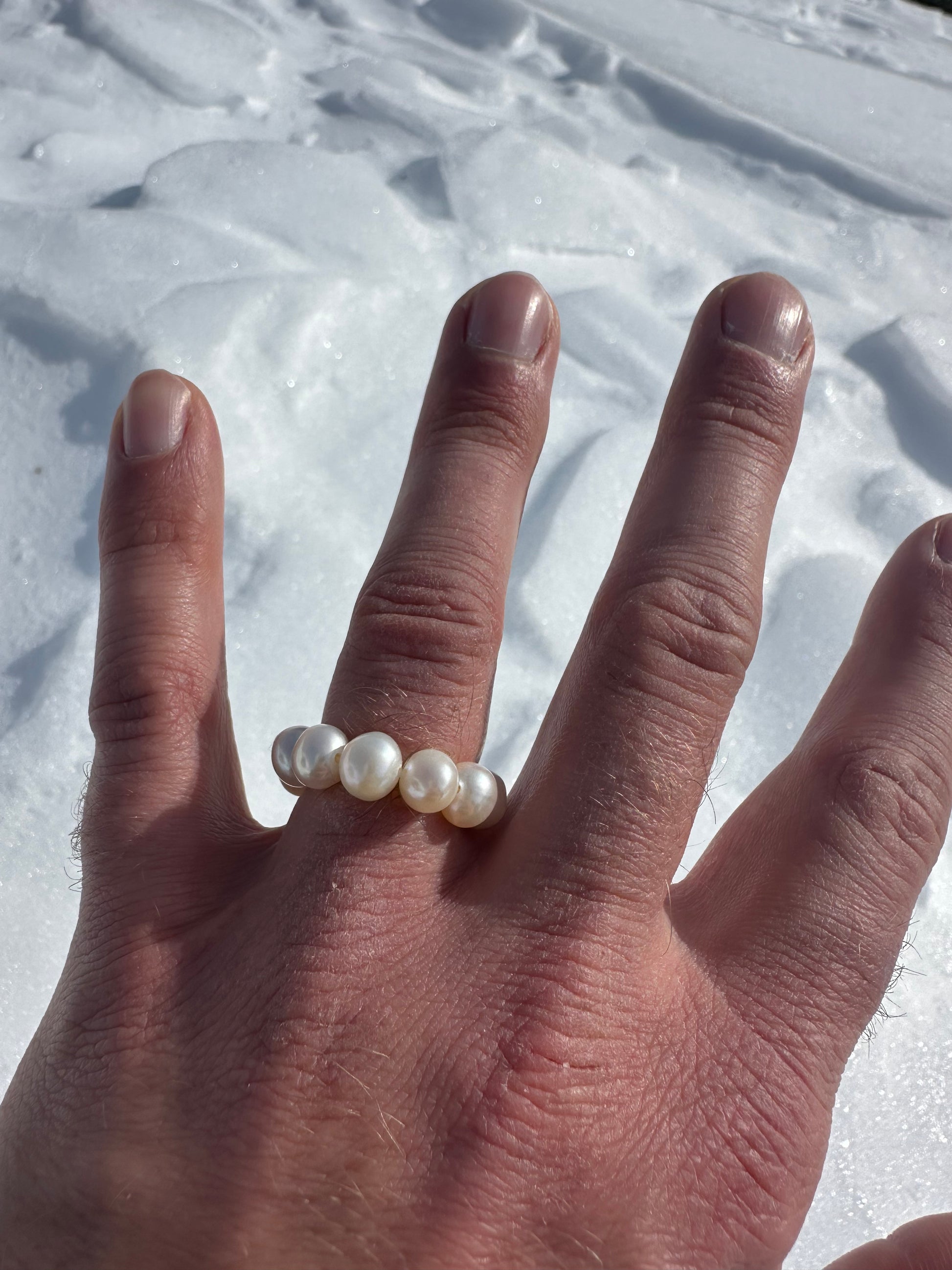 AURELIUS · anillo elástico compuesto por perlas de agua dulce calidad A, redondas y de tamaño medio.