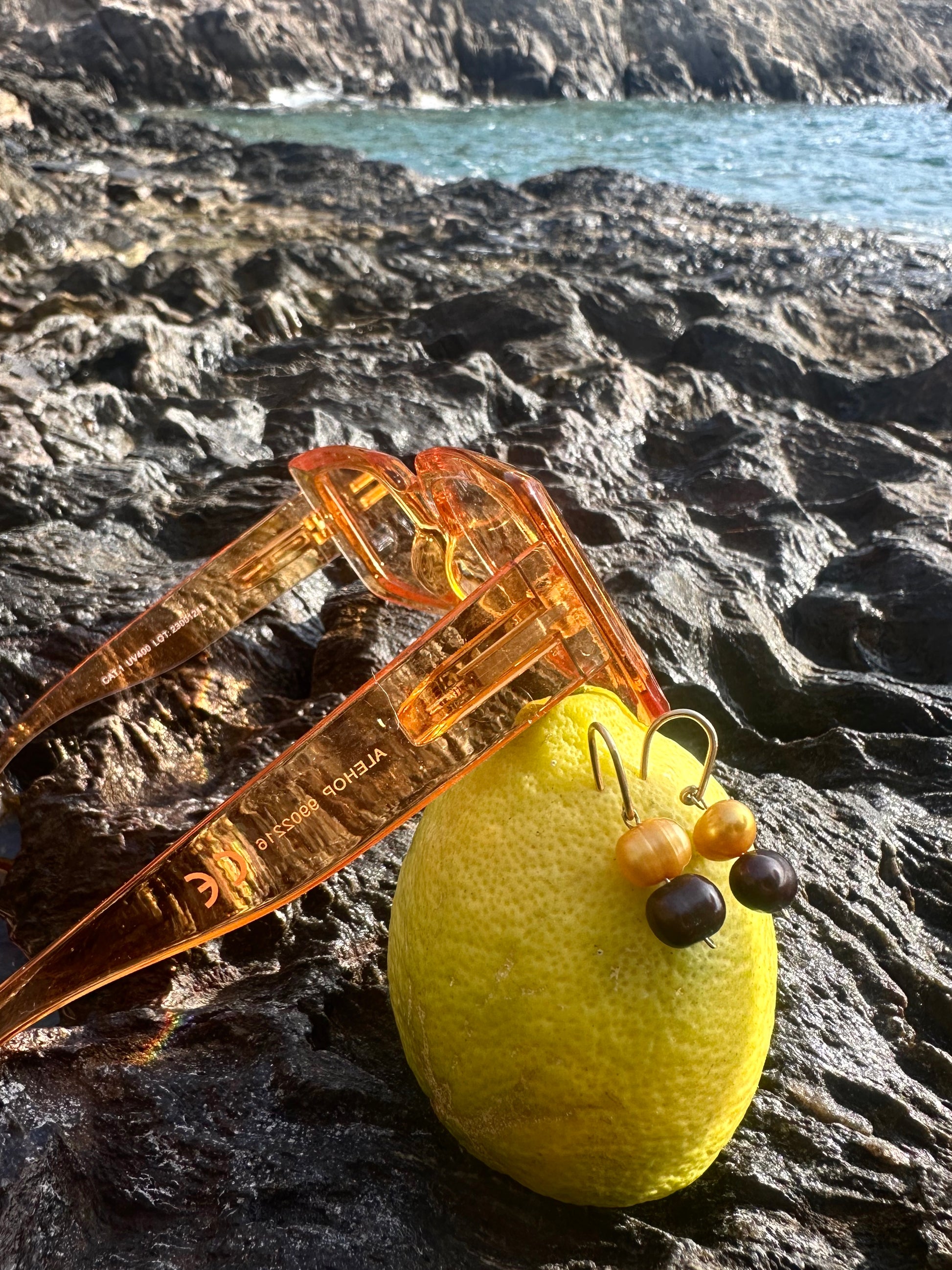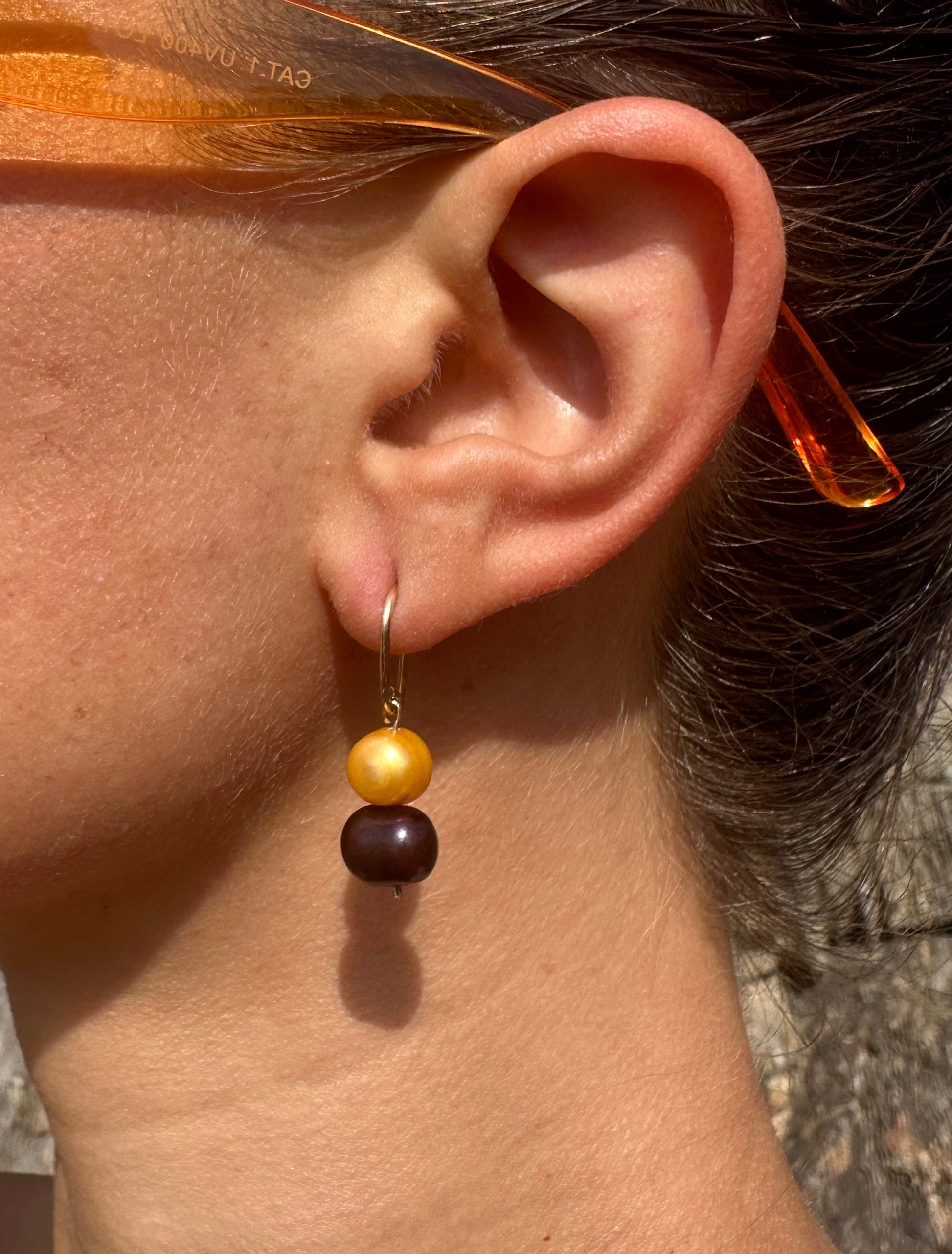 perlas cultivadas de agua dulce teñidas · interior: alambre 14K gold filled · gancho: 14K gold filled