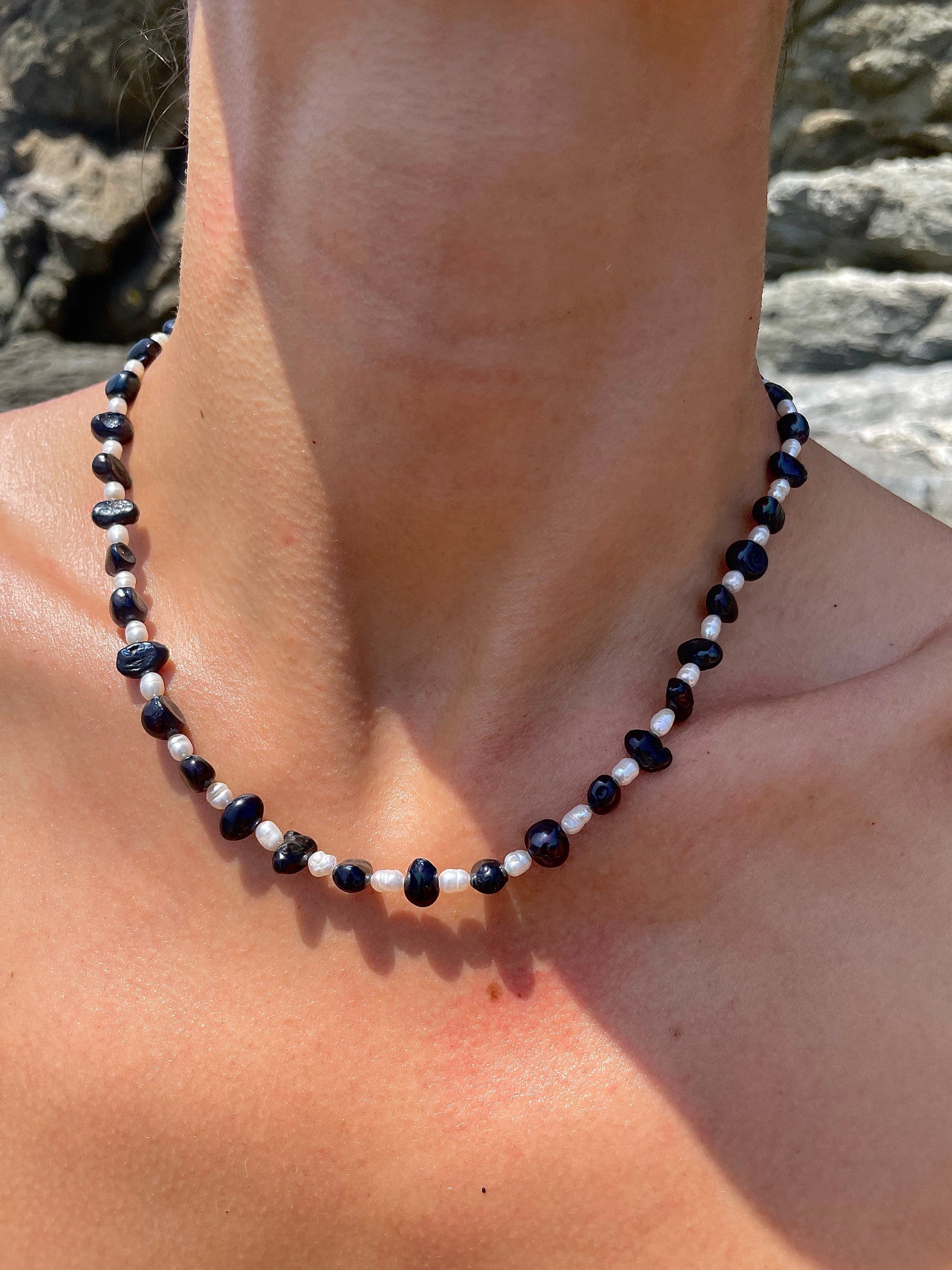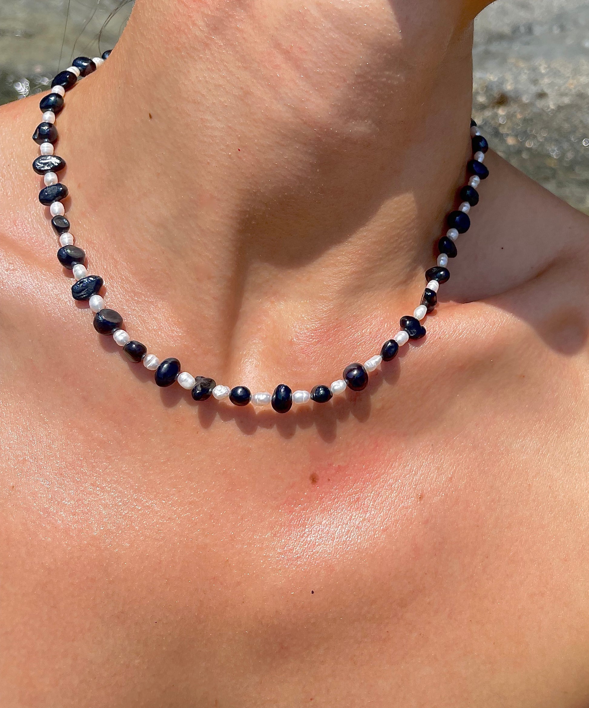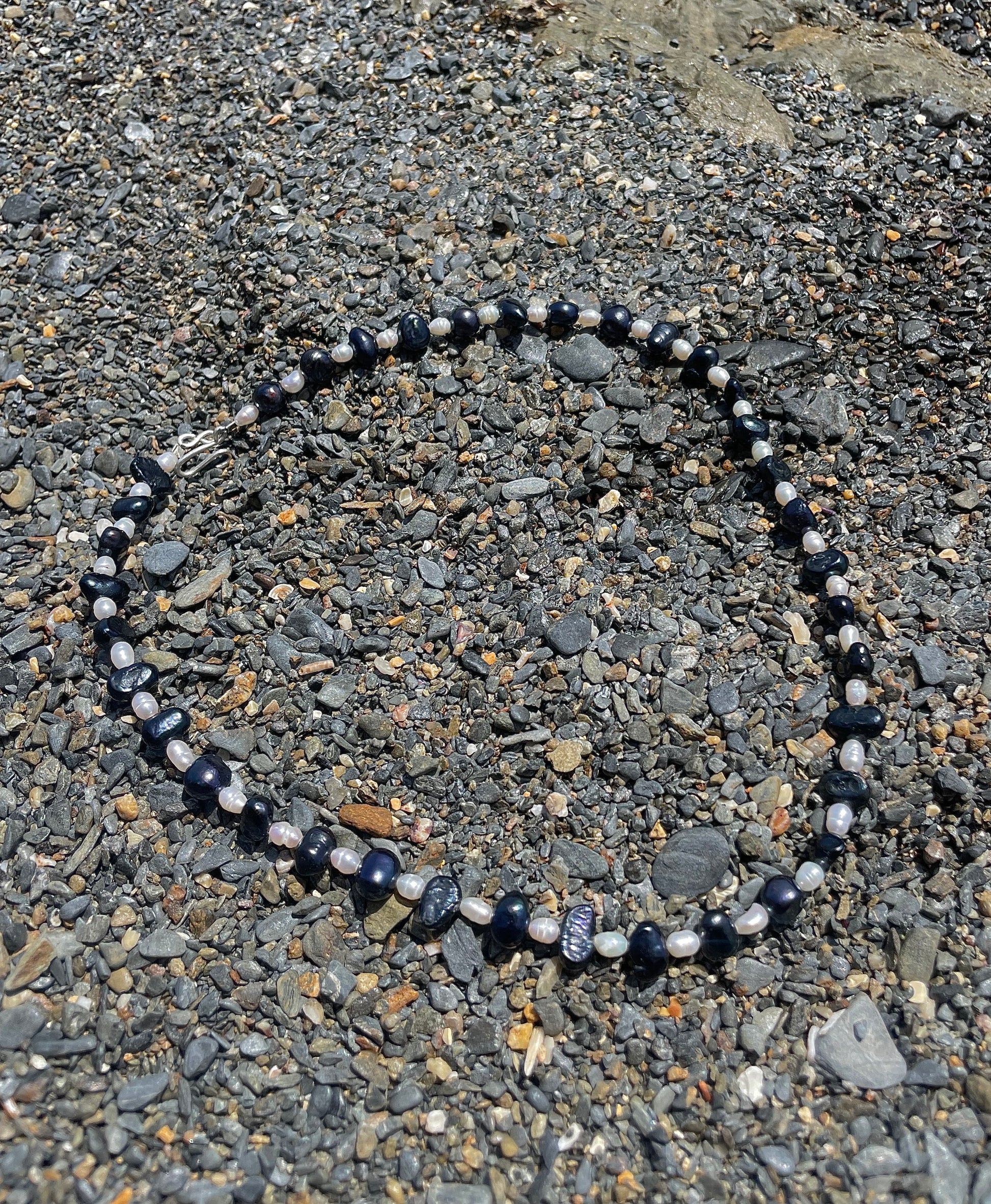 ROBERT· collar de perlas de agua dulce en tonos blanco y negro — una armonía de contrastes.