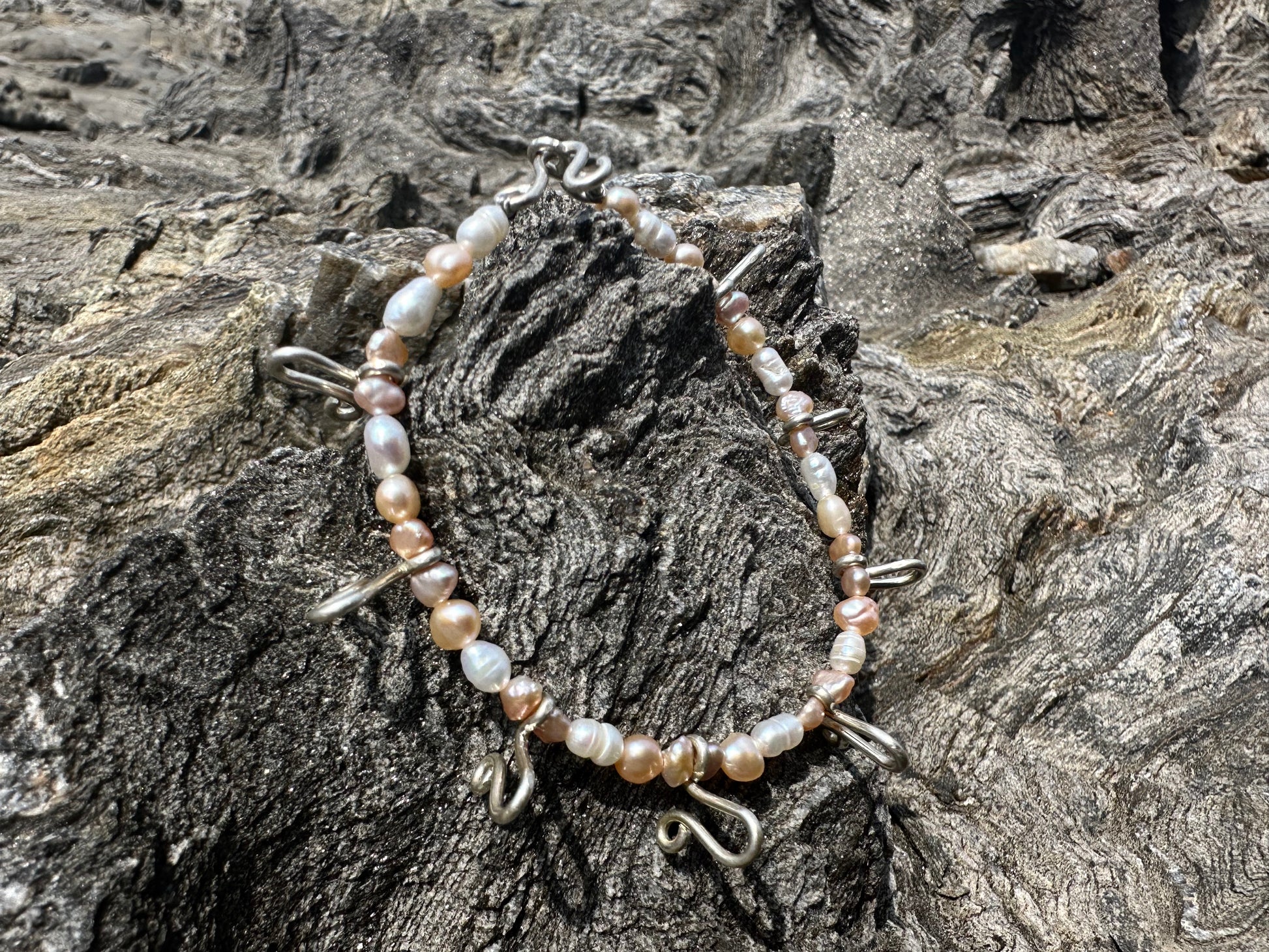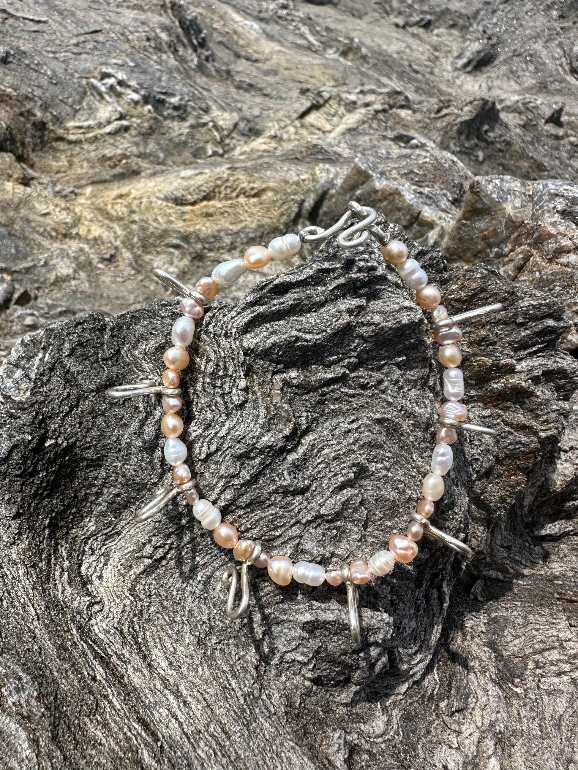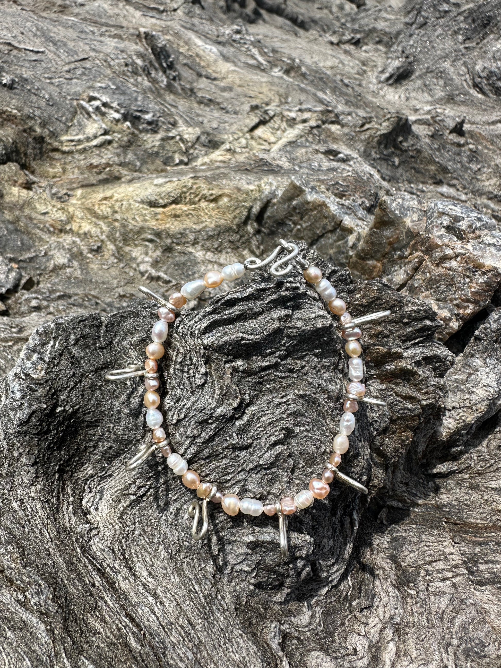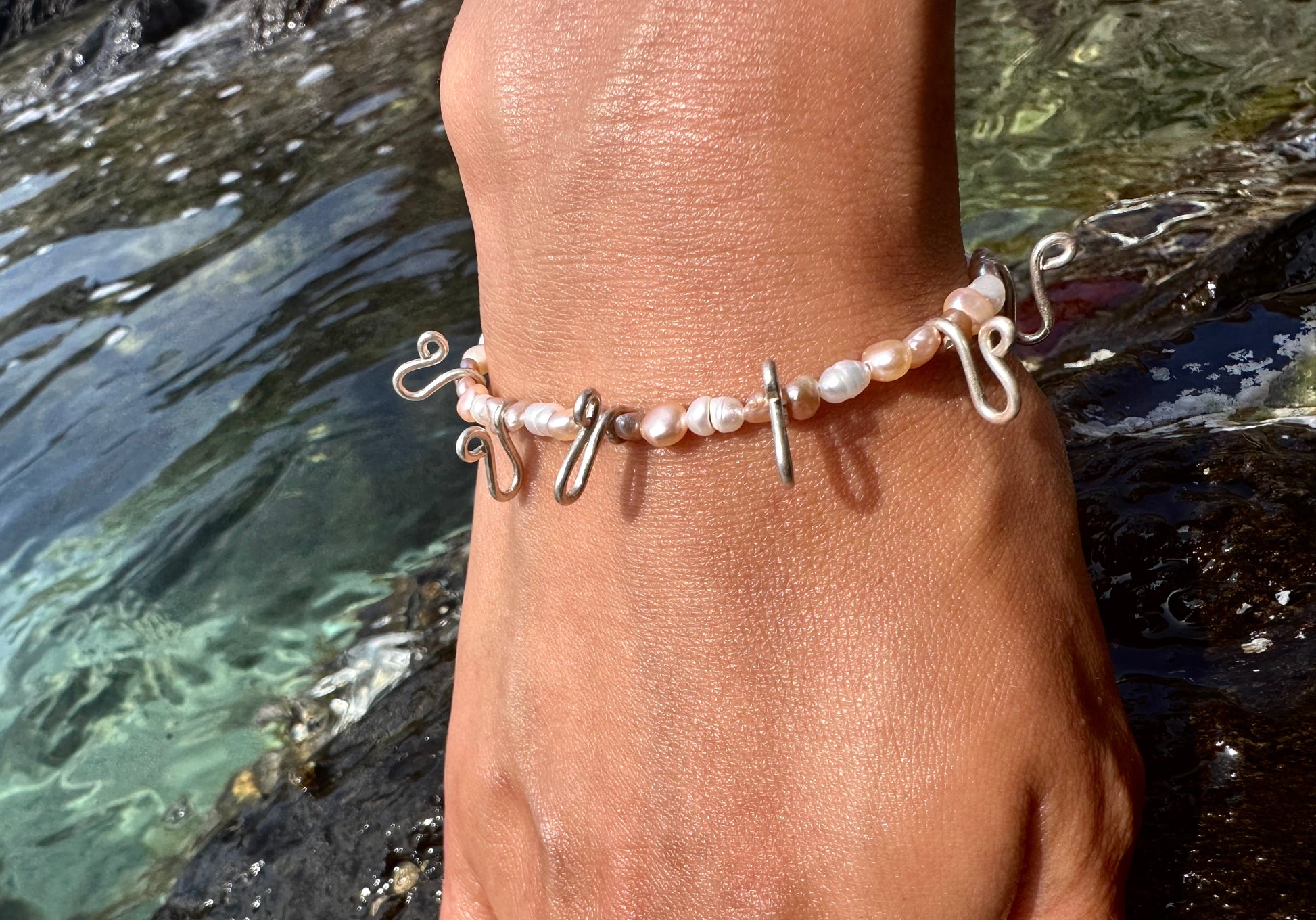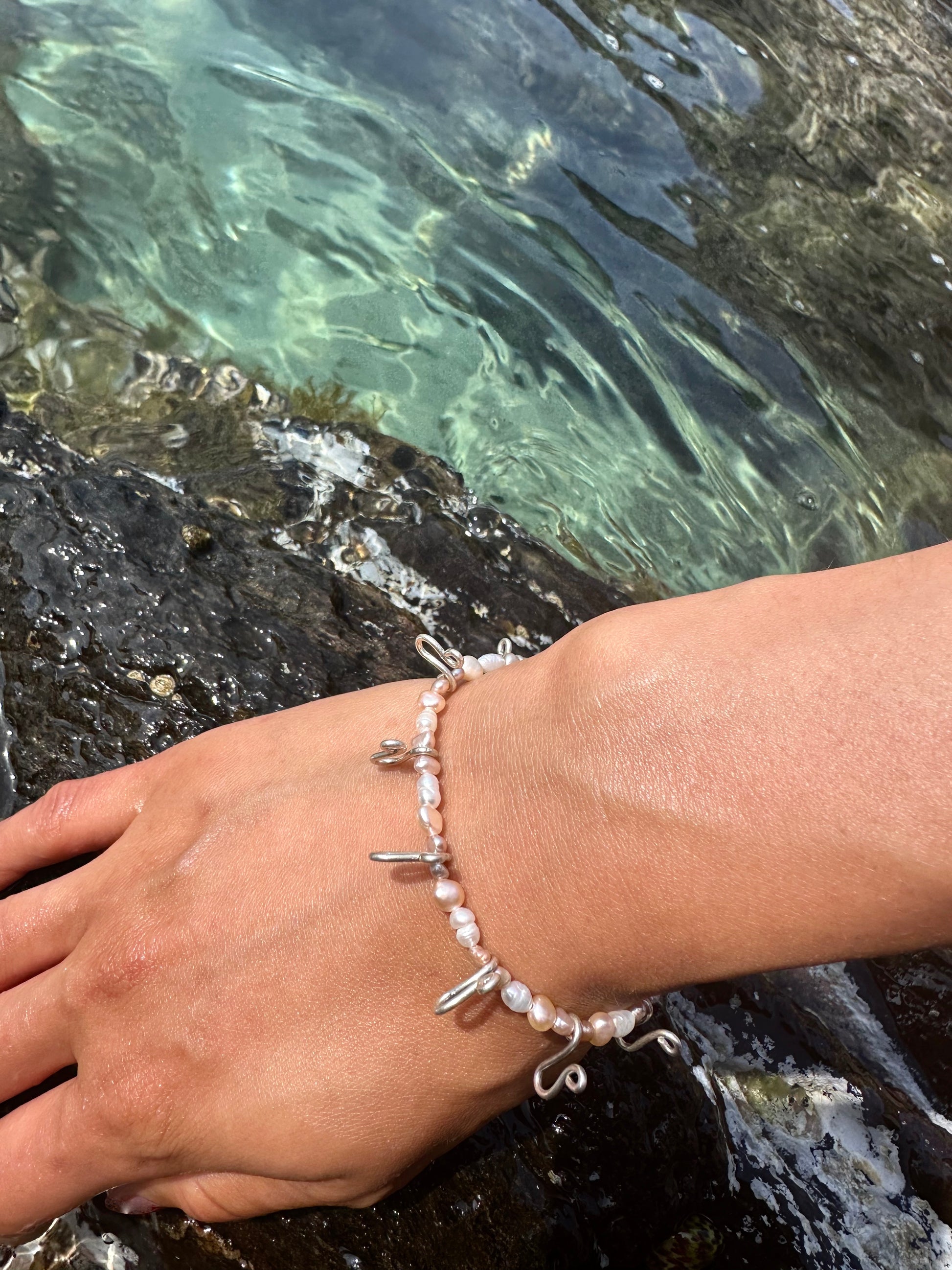 SALTI · pulsera de perlas de agua dulce finas, realzada con exclusivos adornos en plata de ley 925.