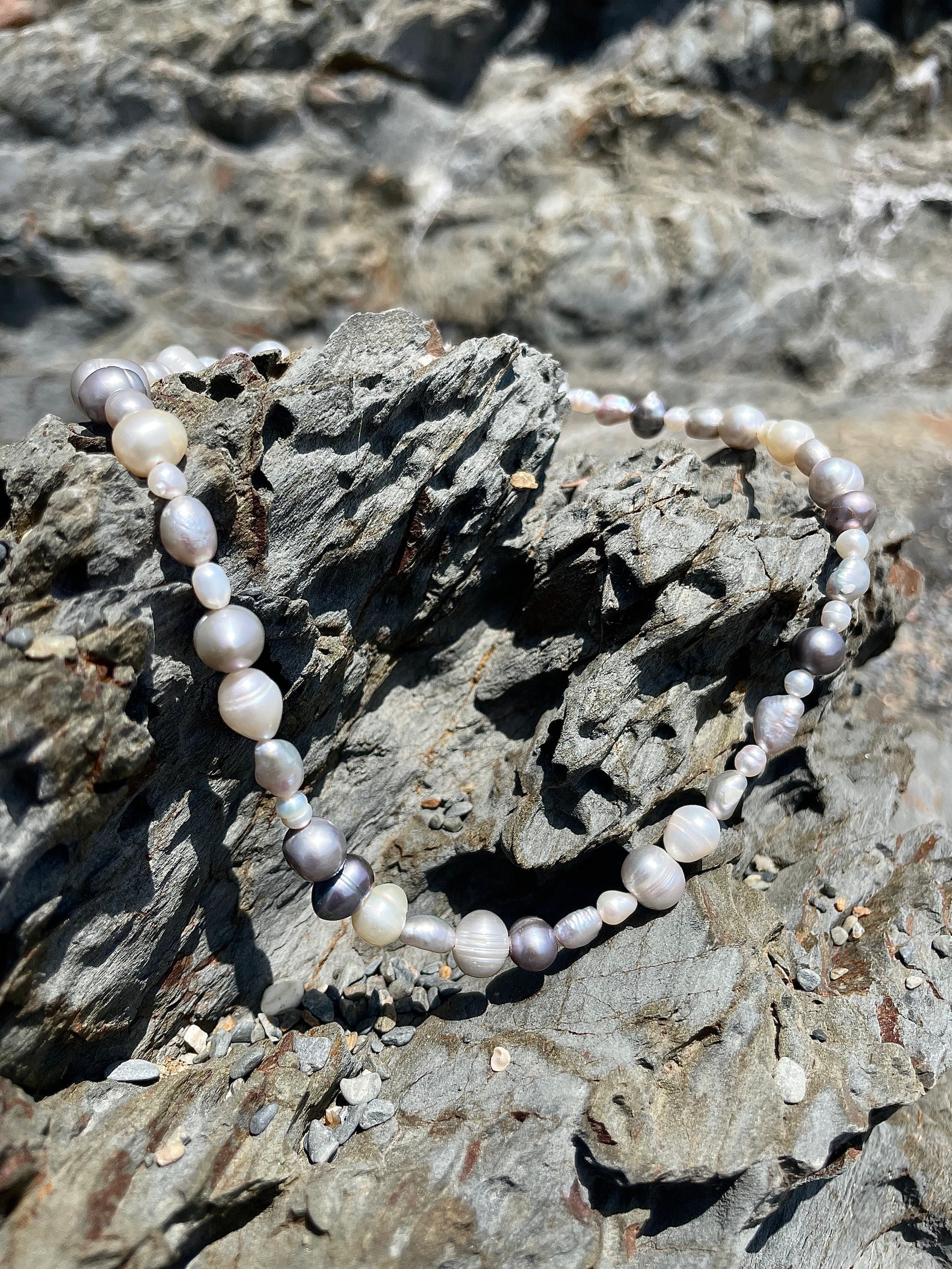 perlas cultivadas de agua dulce blancas y teñidas · interior: hilo de nylon · cierre: plata 925